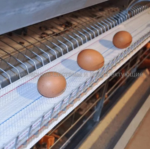 Лента конвейерная для яйцесборников (лента яйцесбора) предназначена для транспортировки яиц на птицефабриках. Лента изготавливается из полипропиленовой мультифиламентной нити различного плетения ("полотно", "ёлочка", сшивная).